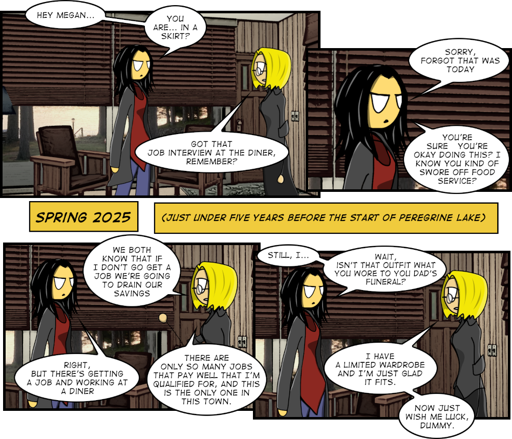 Like last year, Ethan’s taking the holiday off, so instead you get a flashback comic set before Peregrine Lake drawn by Trae! This week and next week, the comic will update Tuesday AND Thursday. This bonus story will stay on[…]↓ Read the rest of this entry…